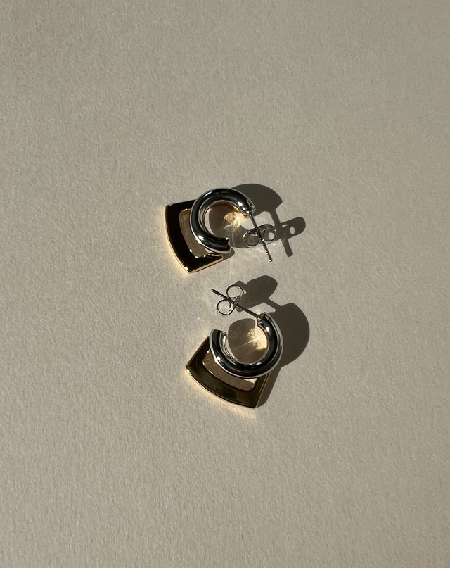 汗水に強く変色の少ない アレルギーの出にくい ステンレス素材を採用 2つのフープが重なったデザインで おしゃれで着けやすいピアスです。 サイズ約2cm程度