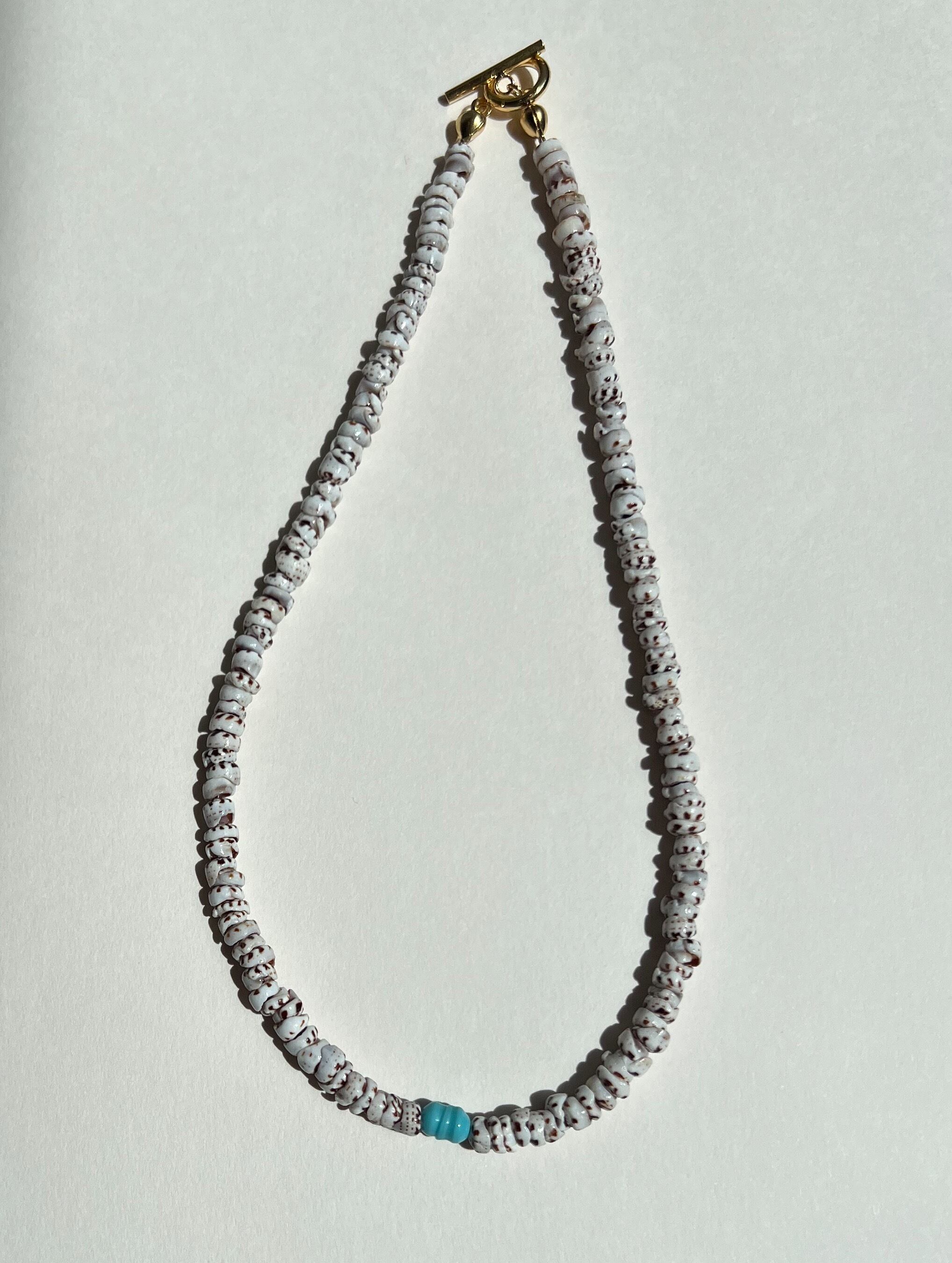 プカシェル (Puka shell) とは、イモガイ類の貝殻が波や砂によって削られ、殻の頂点部分だけが残った