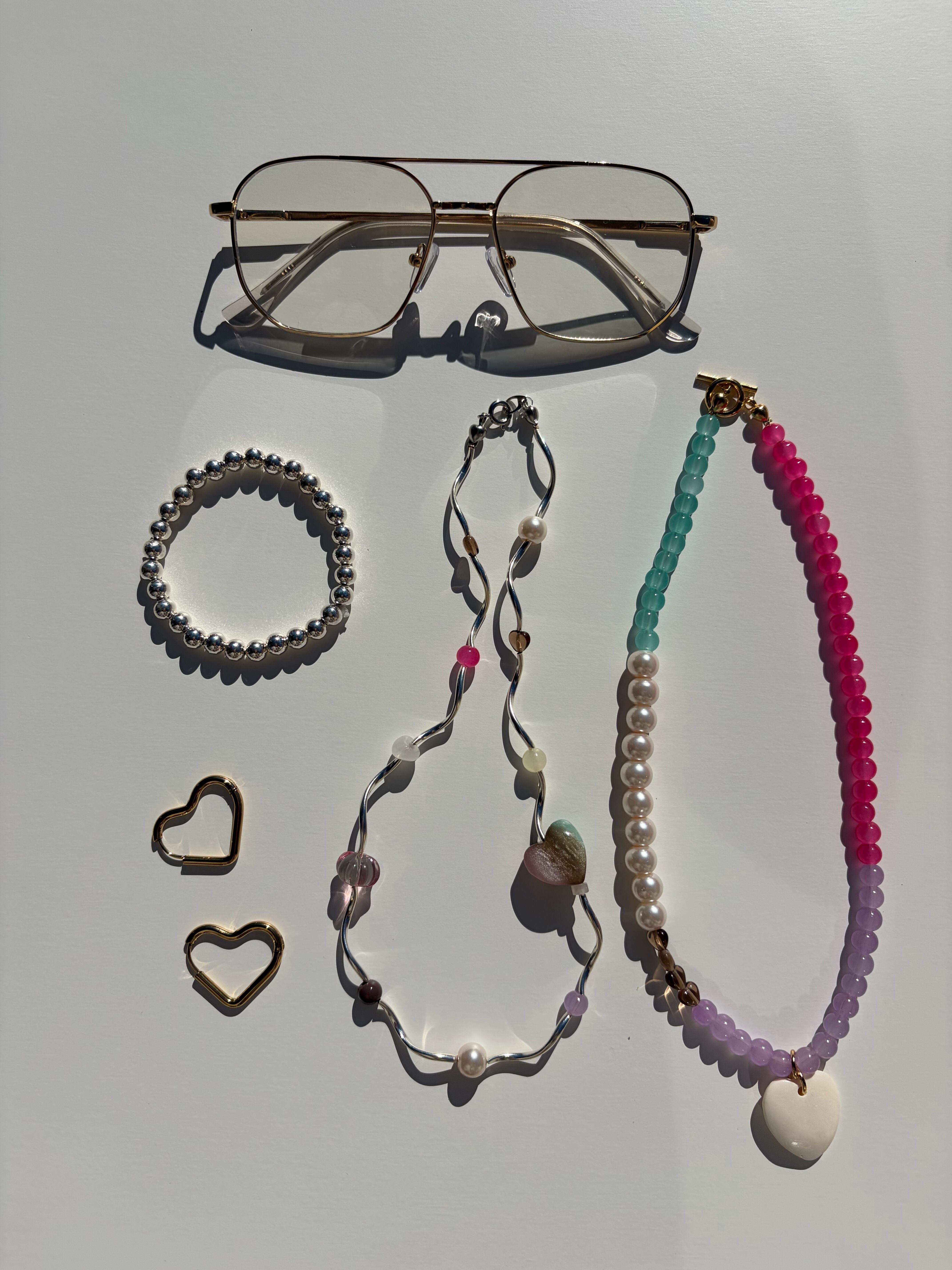 パールや天然石、カラービーズなどをミックス♡