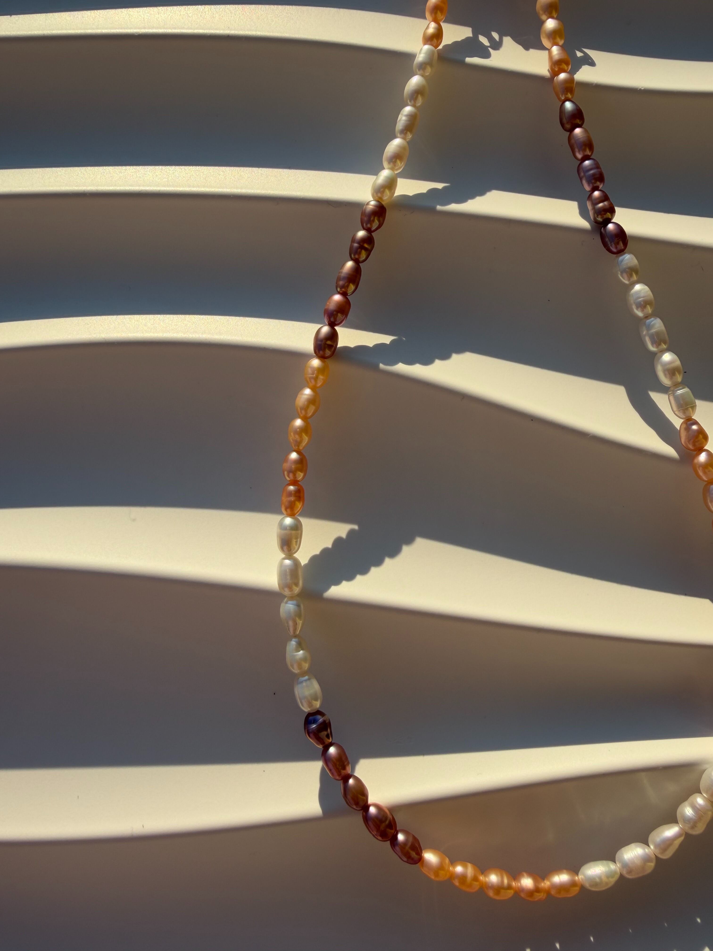 光沢ある3色の淡水パールネックレス