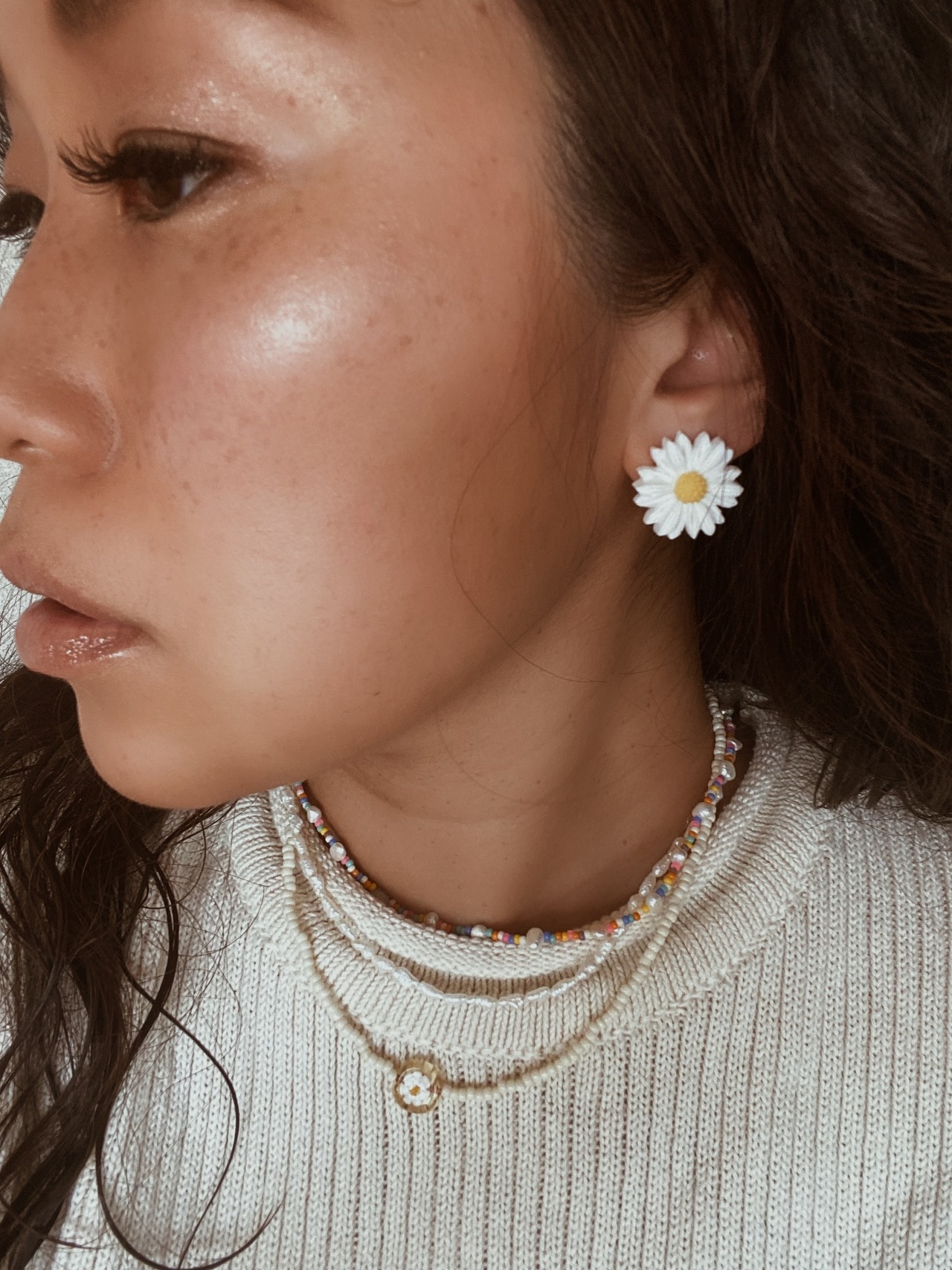 レトロなデイジーフラワーピアス