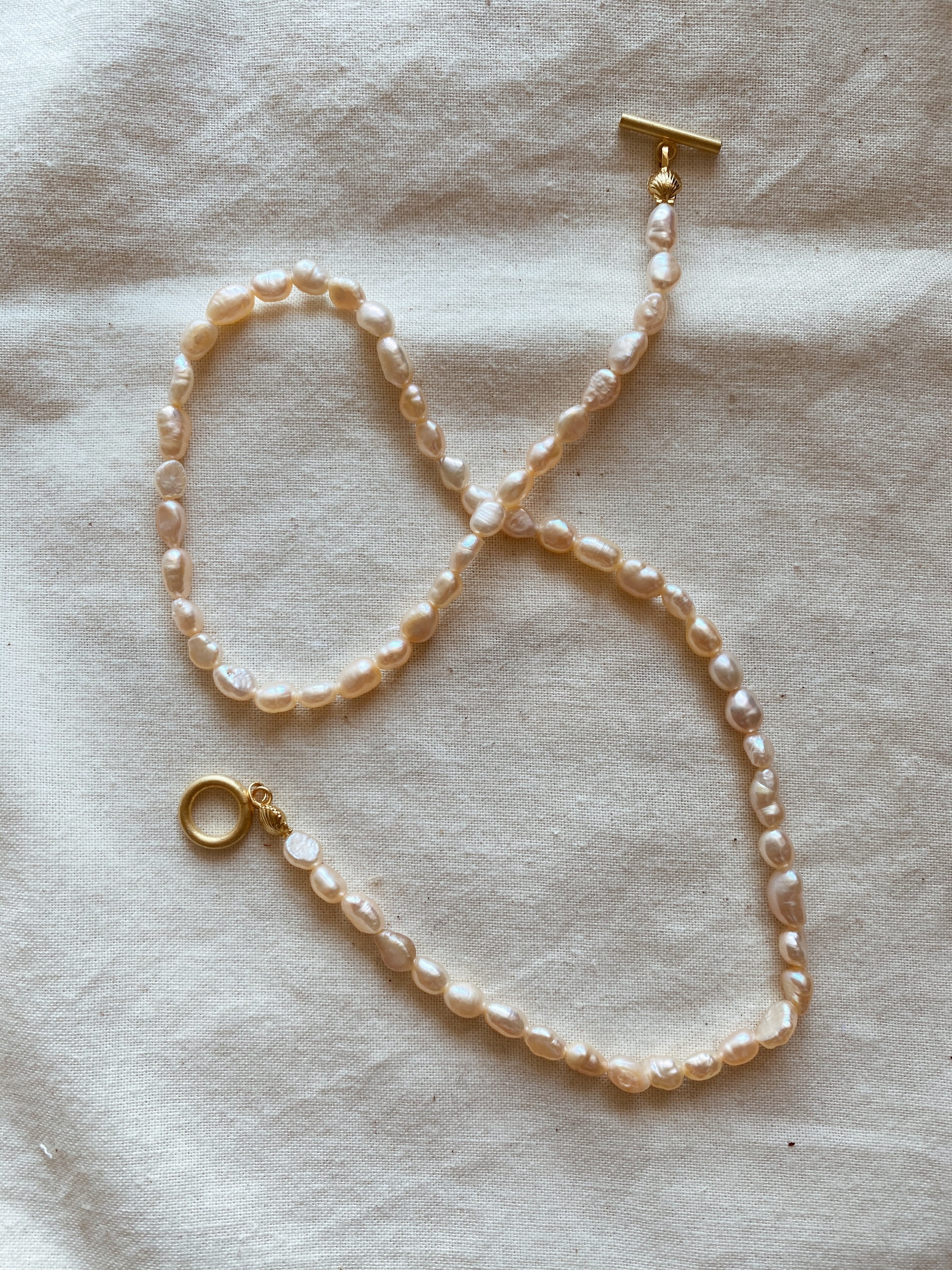 第二弾はうっすらオレンジの天然淡水パールで出来たネックレスです。