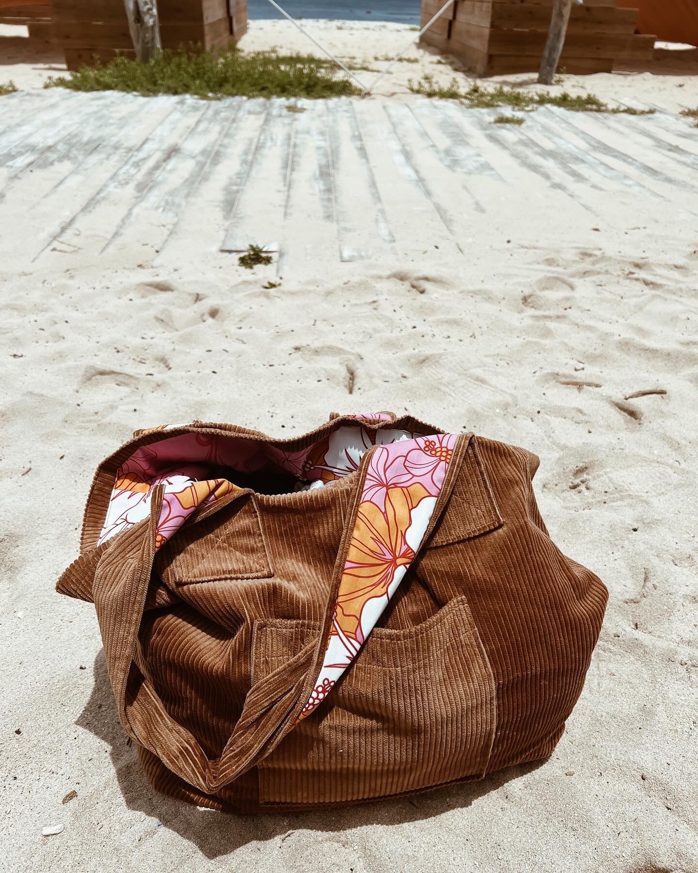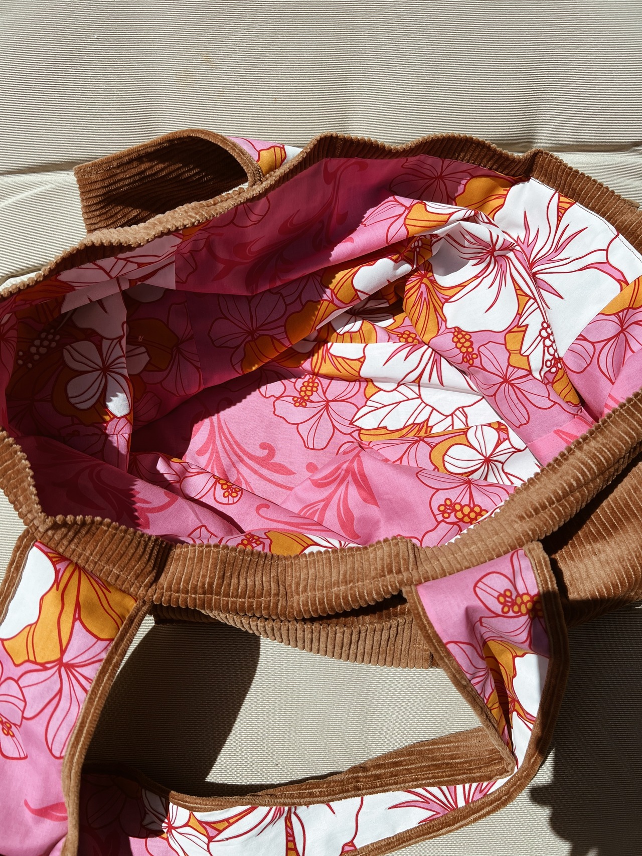 コーデュロイ×ハイビスカスのビーチバッグです。