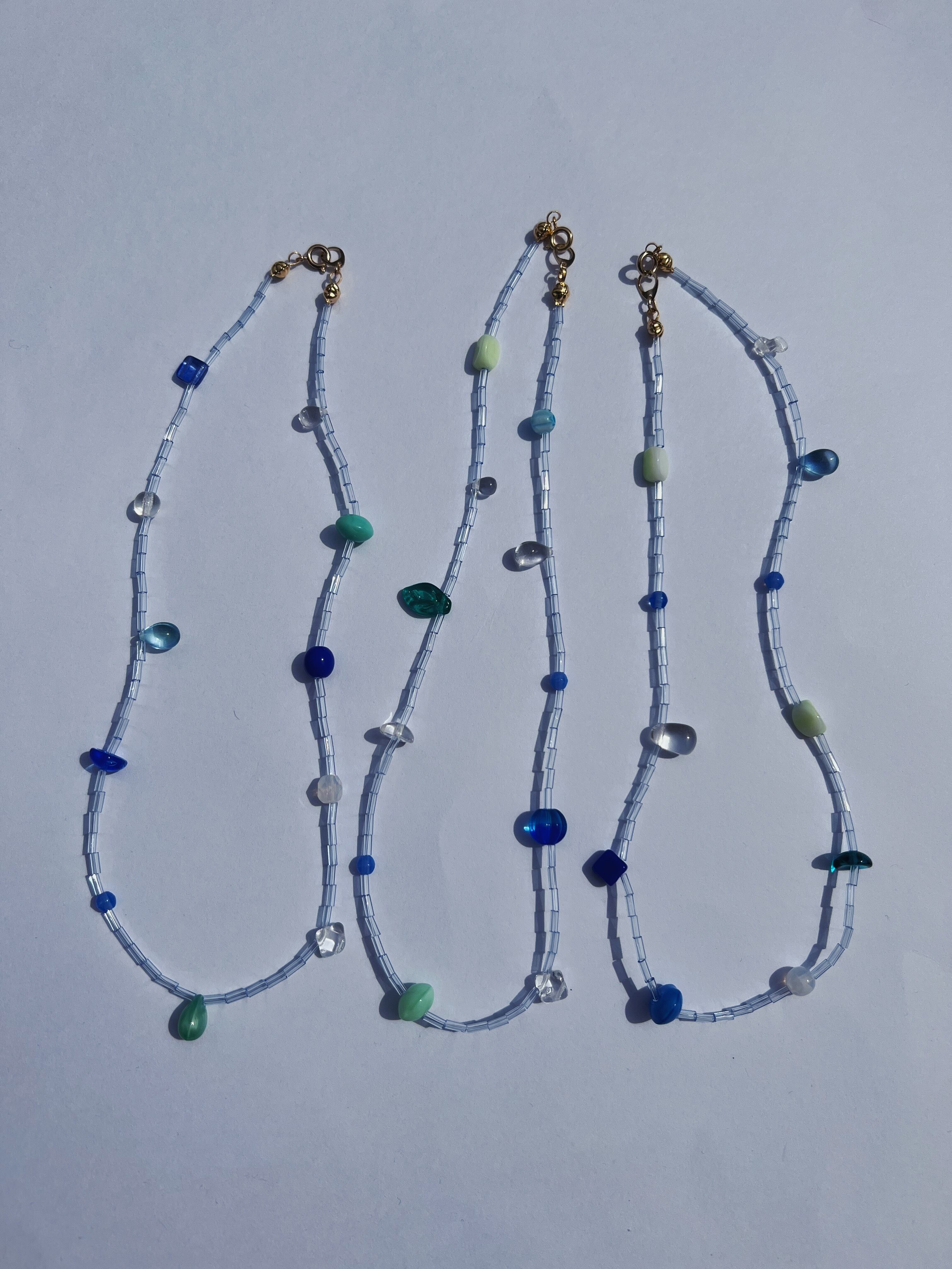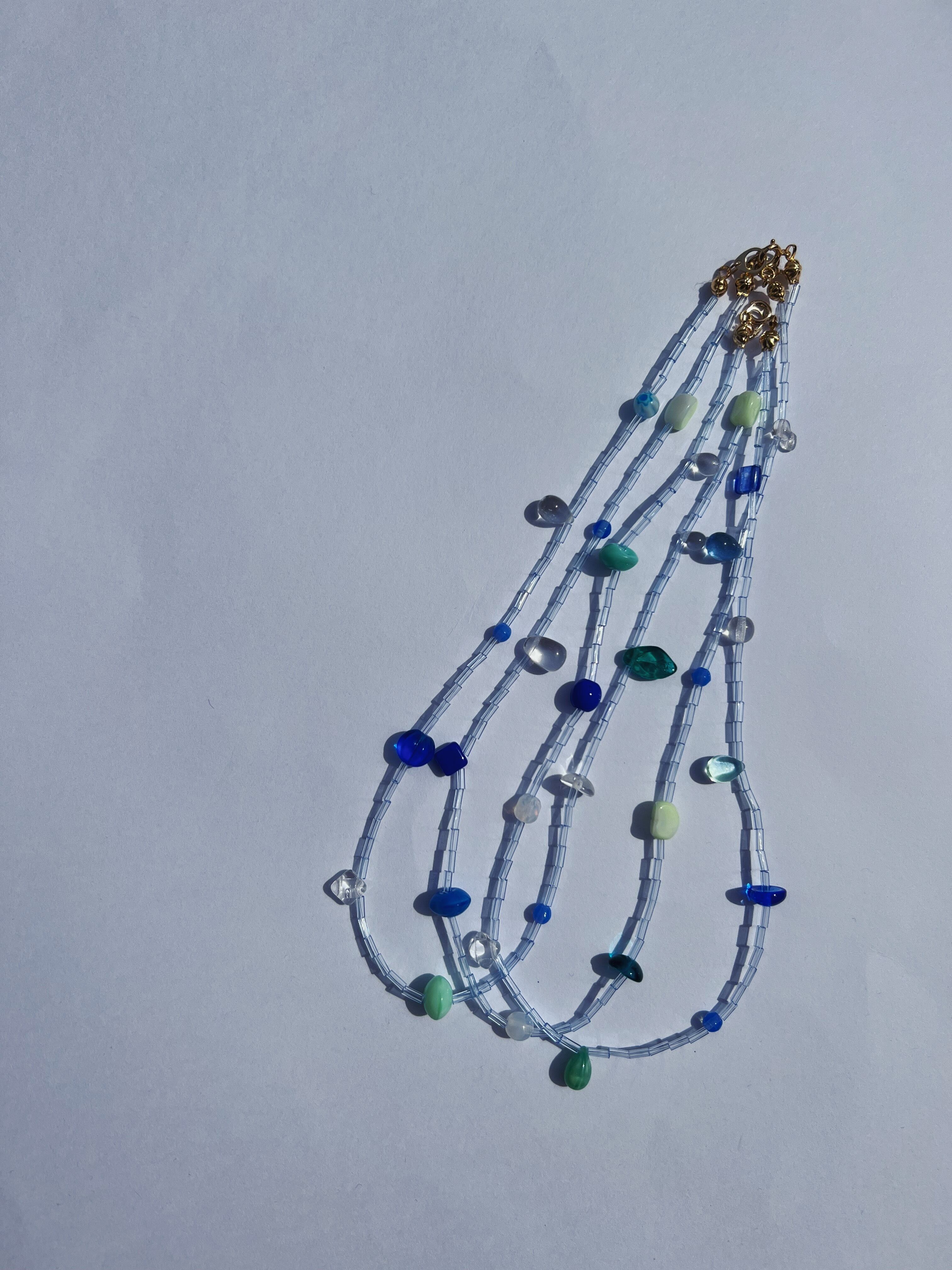涼しげなブルー系ビーズをランダムに使った一点もの‼︎