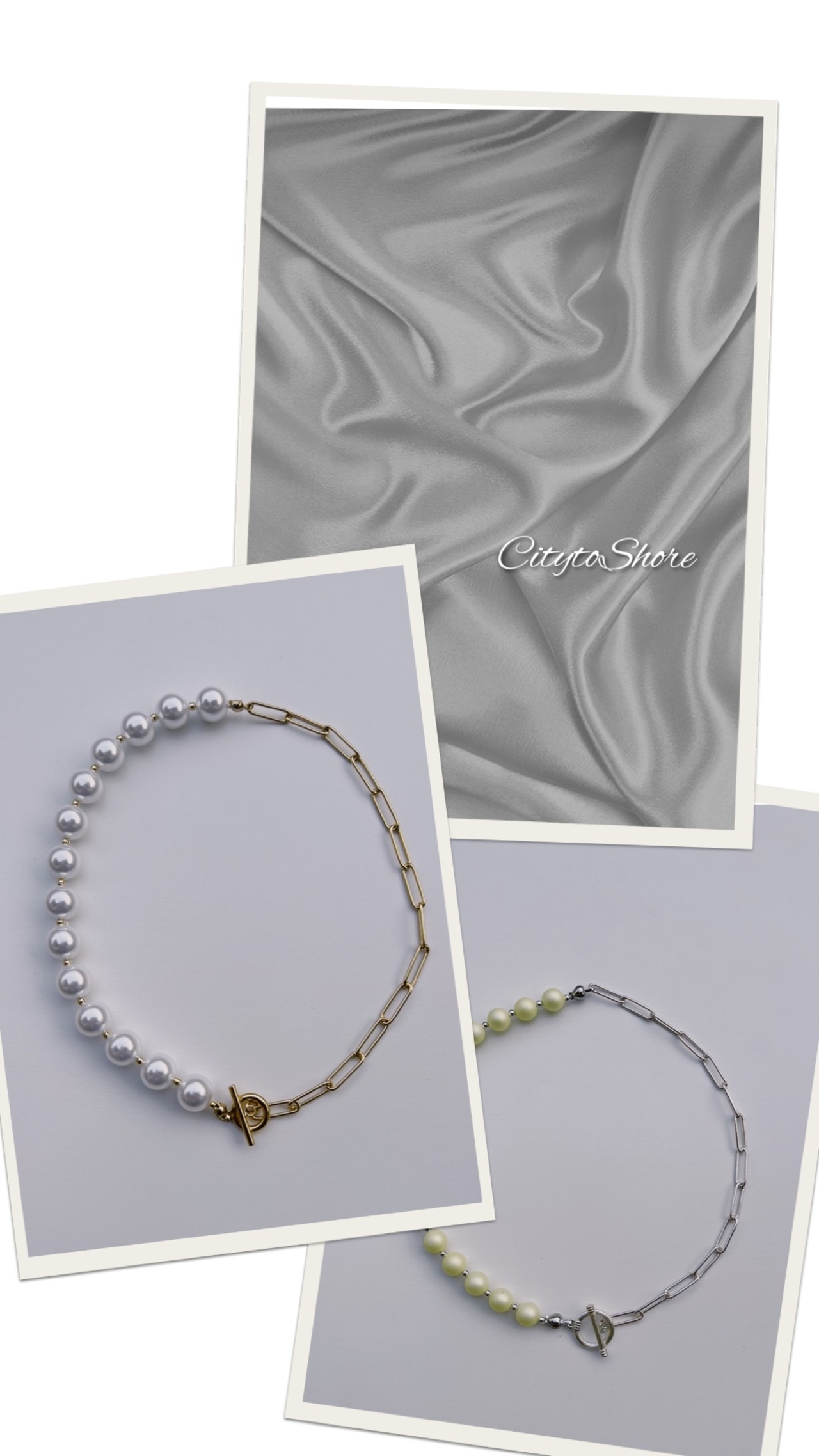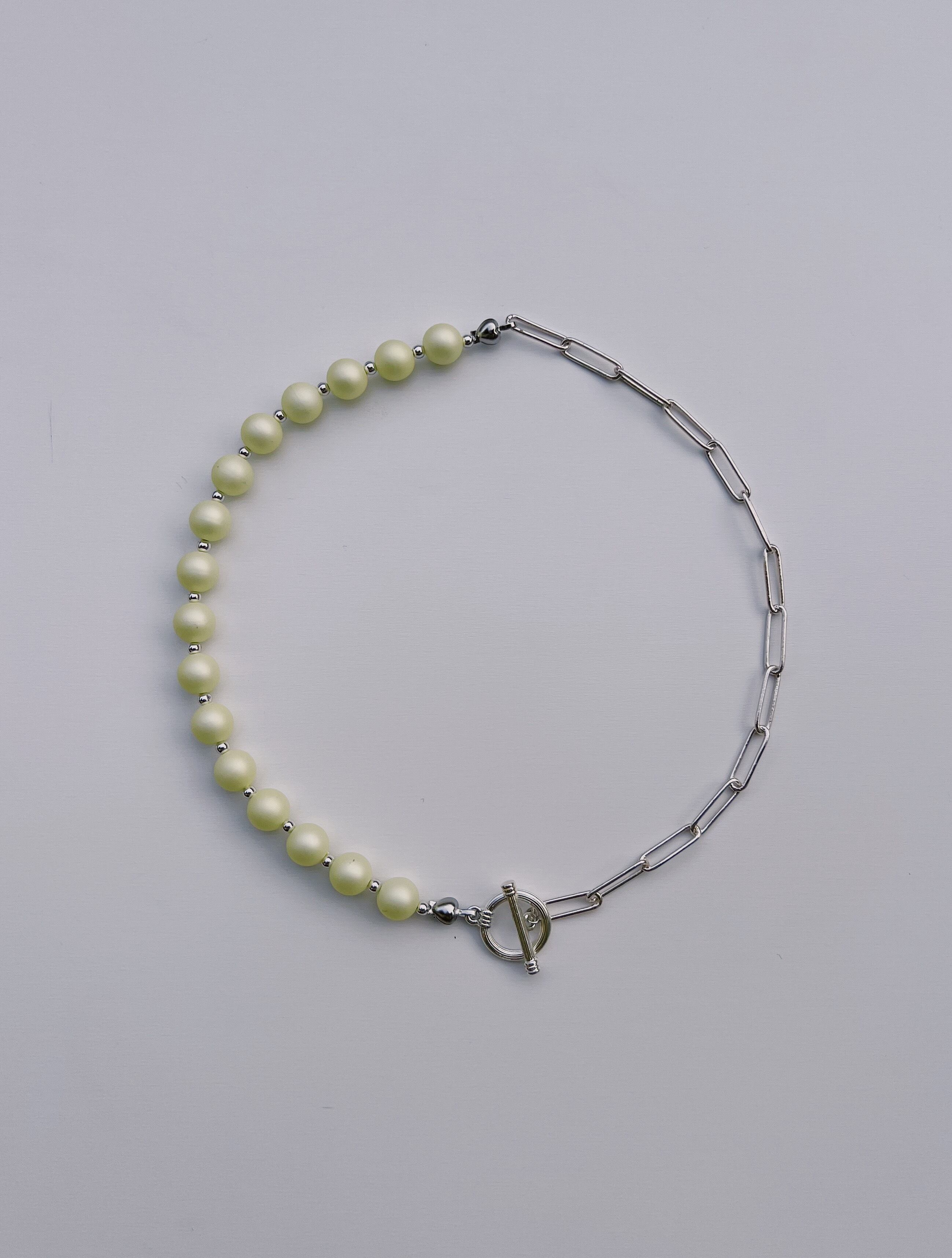 パステルイエロービーズ×シルバーチェーン
