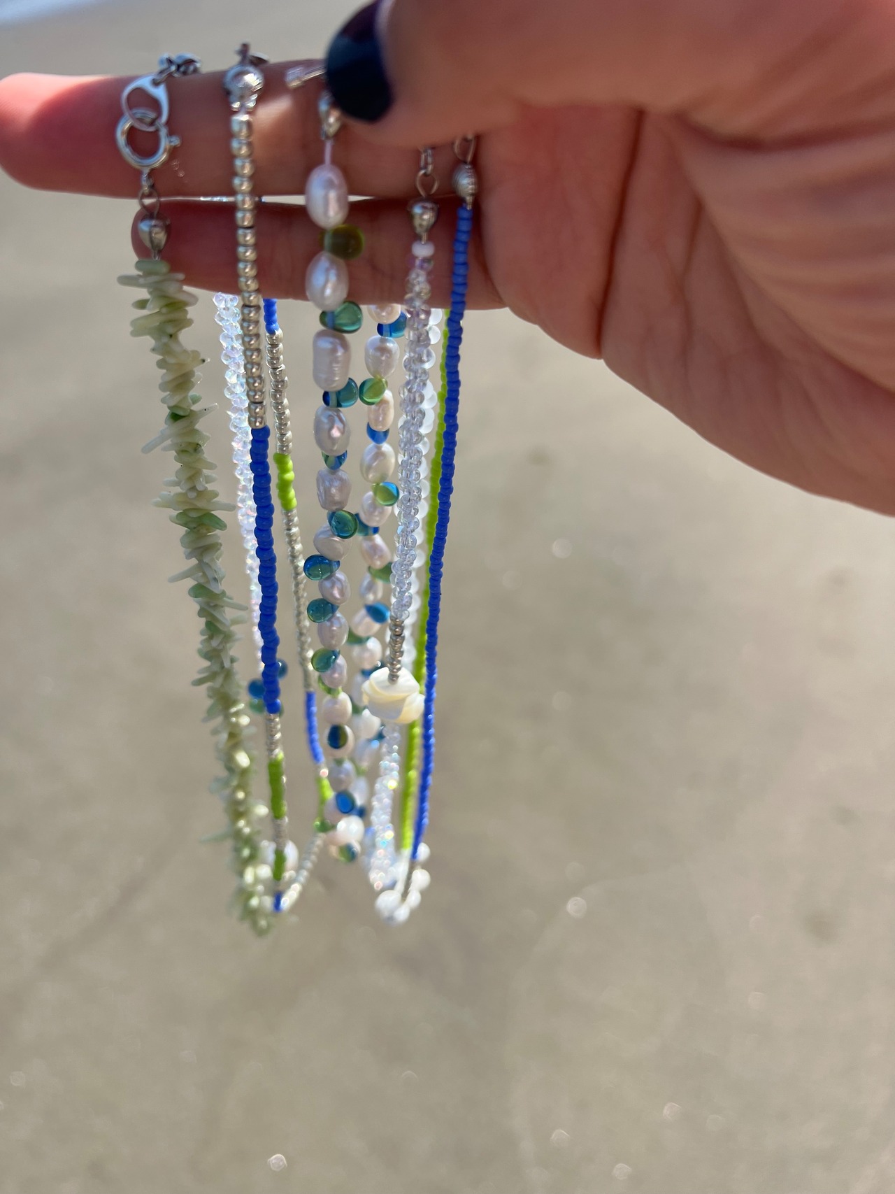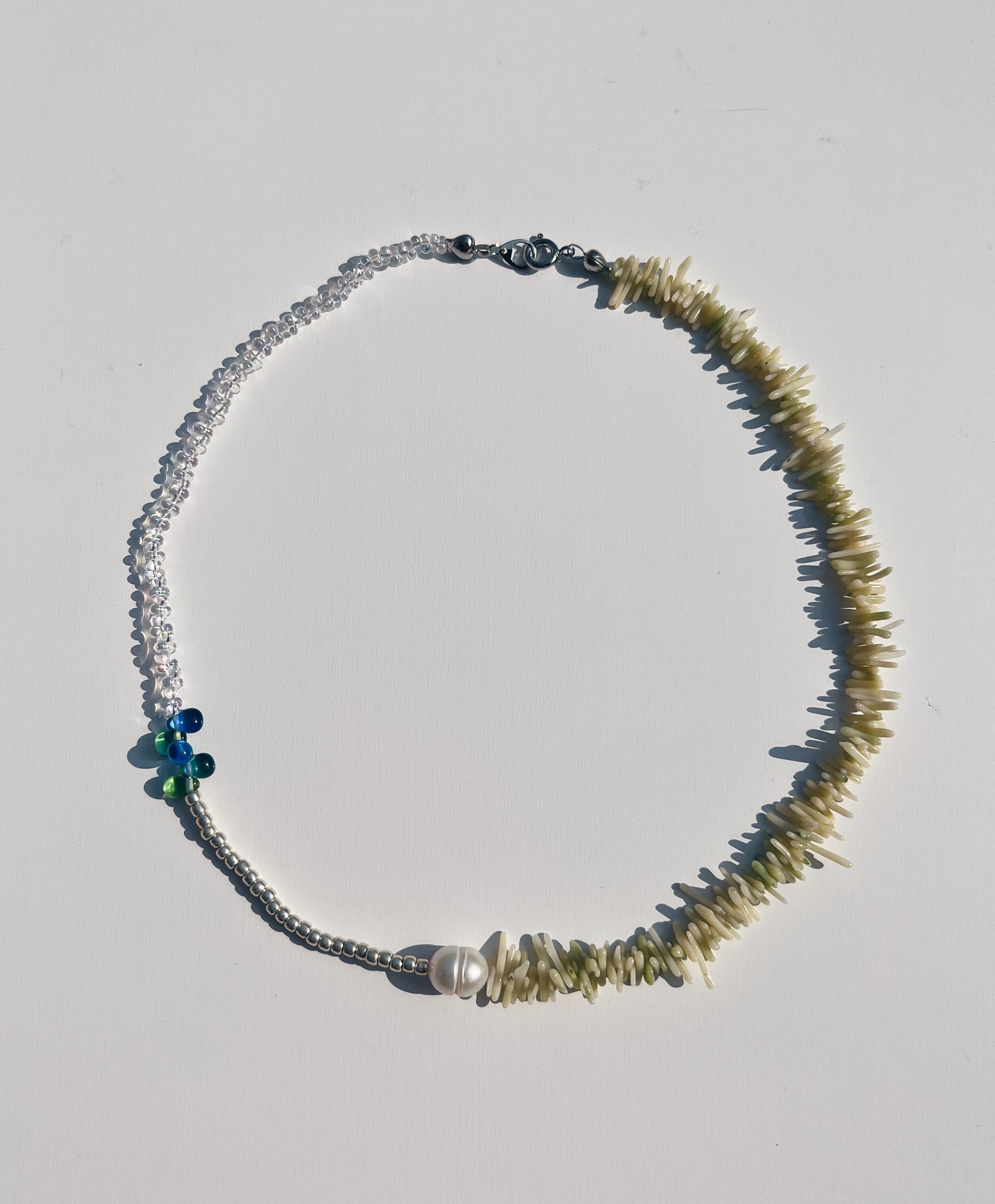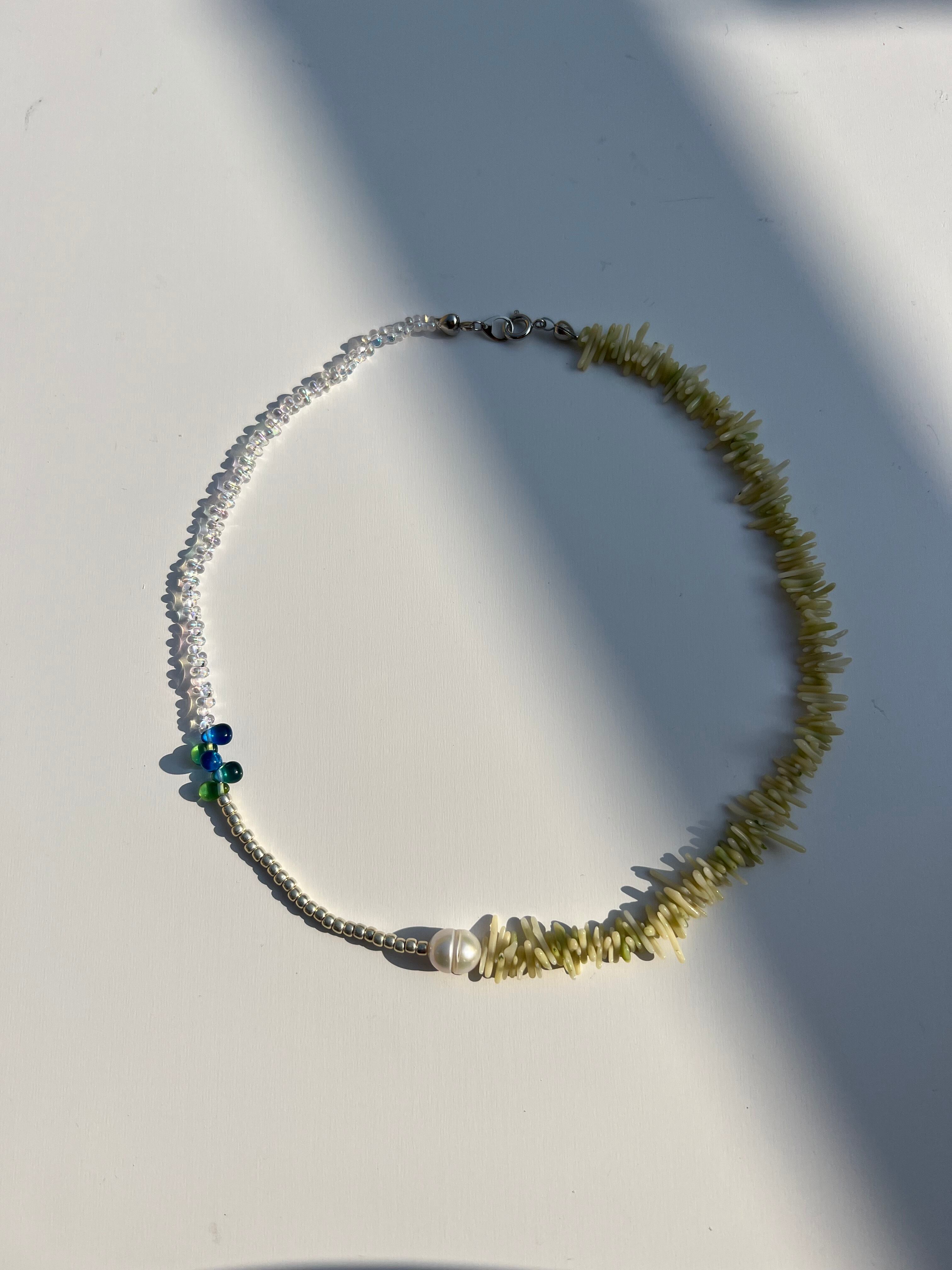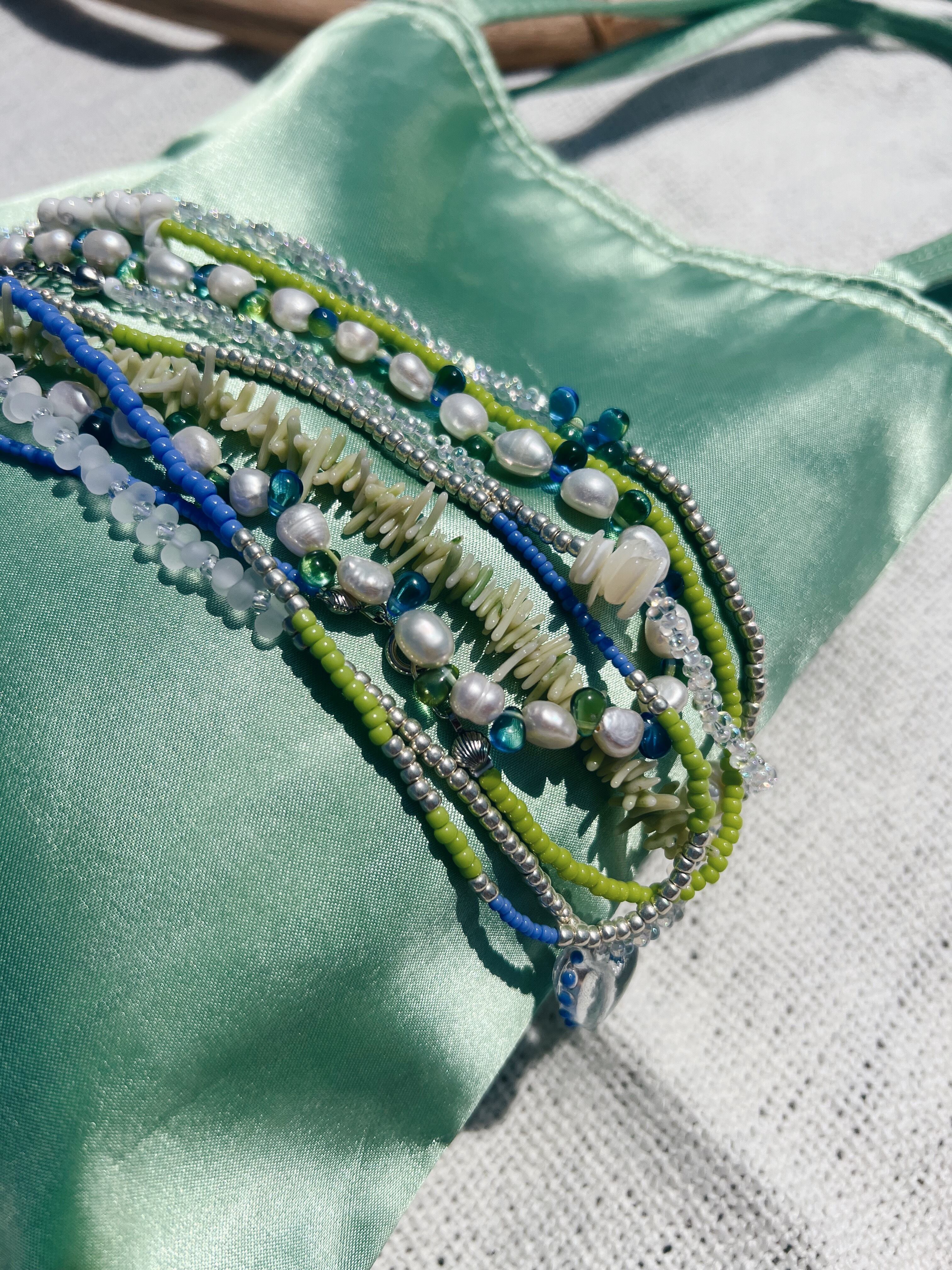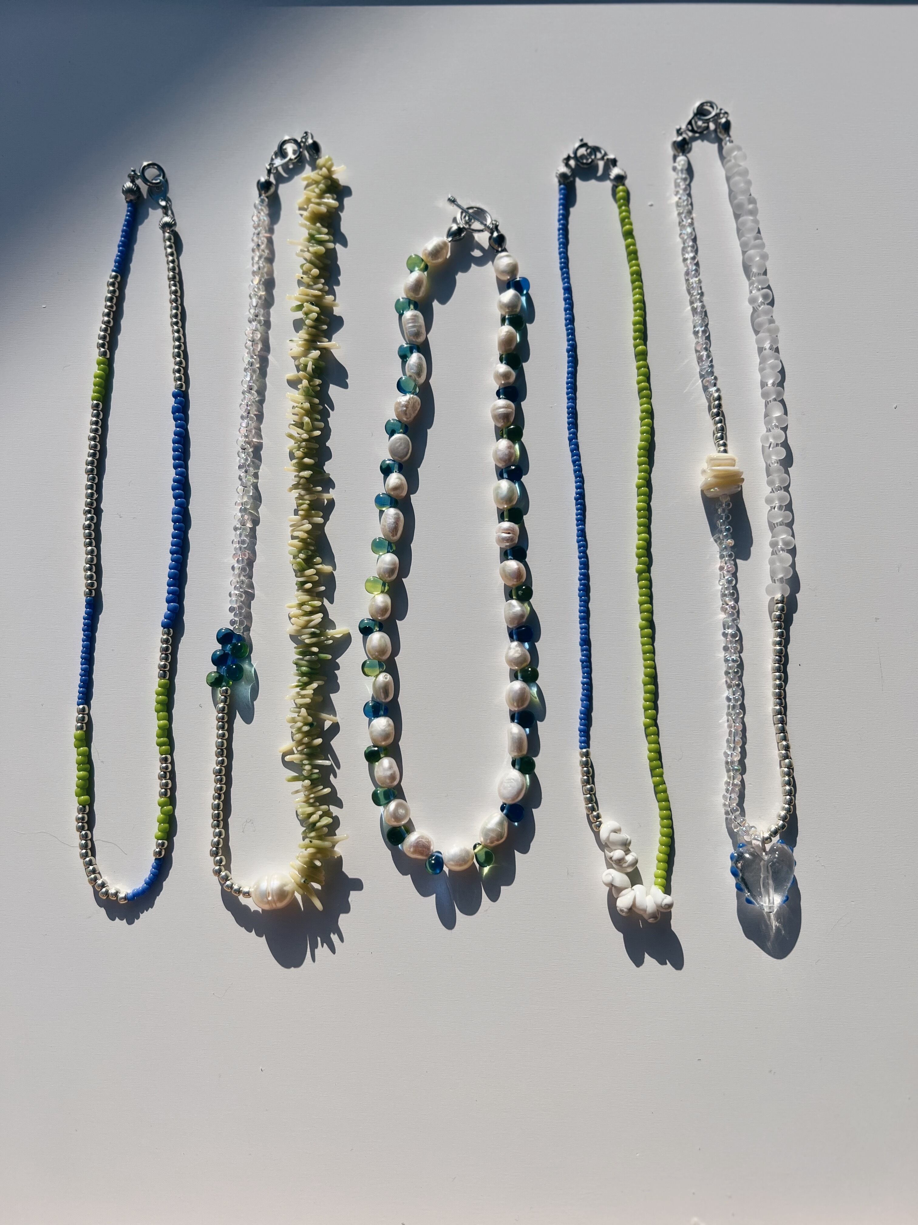 ビーズを組み合わせた涼しげなネックレスは