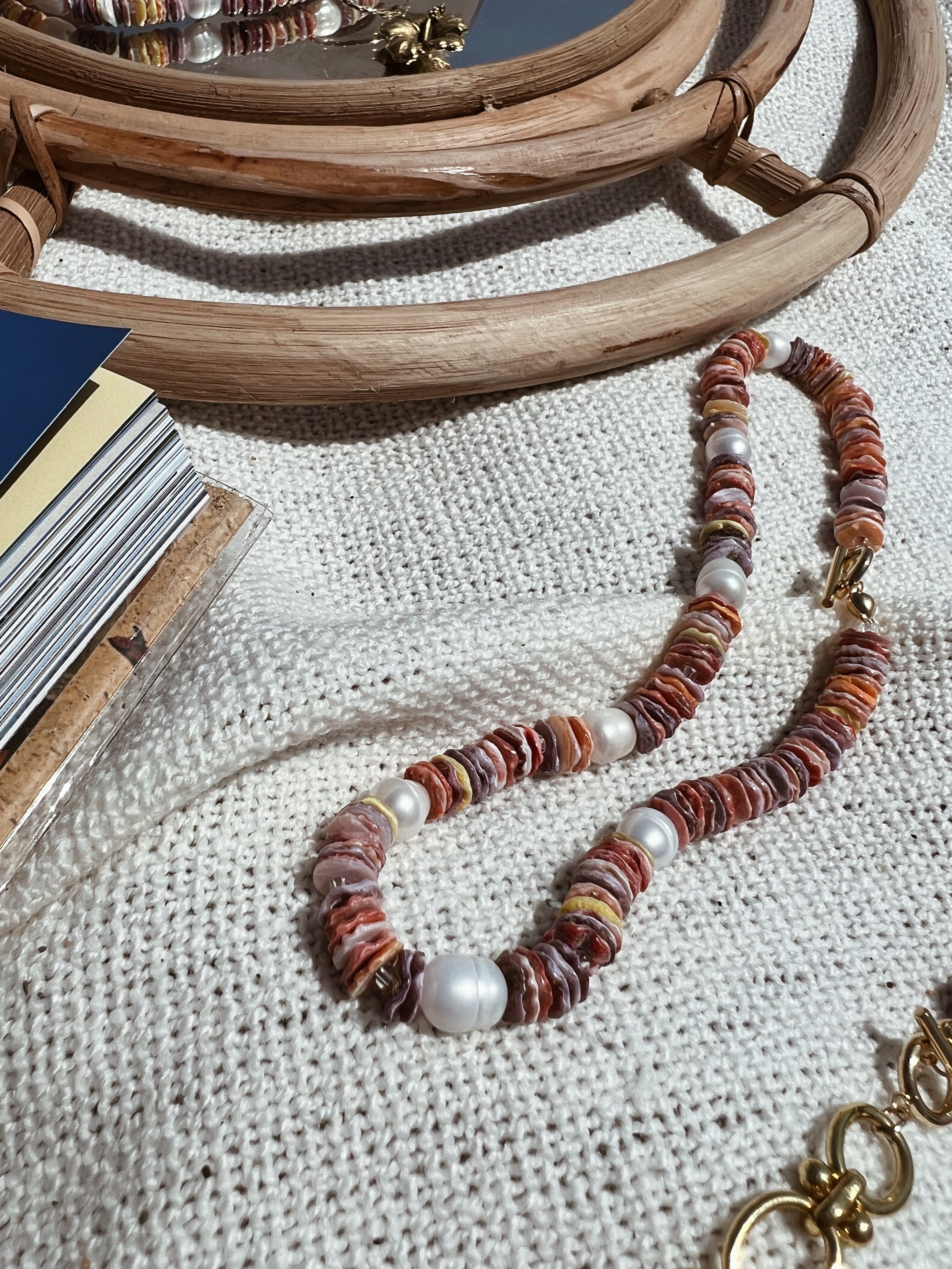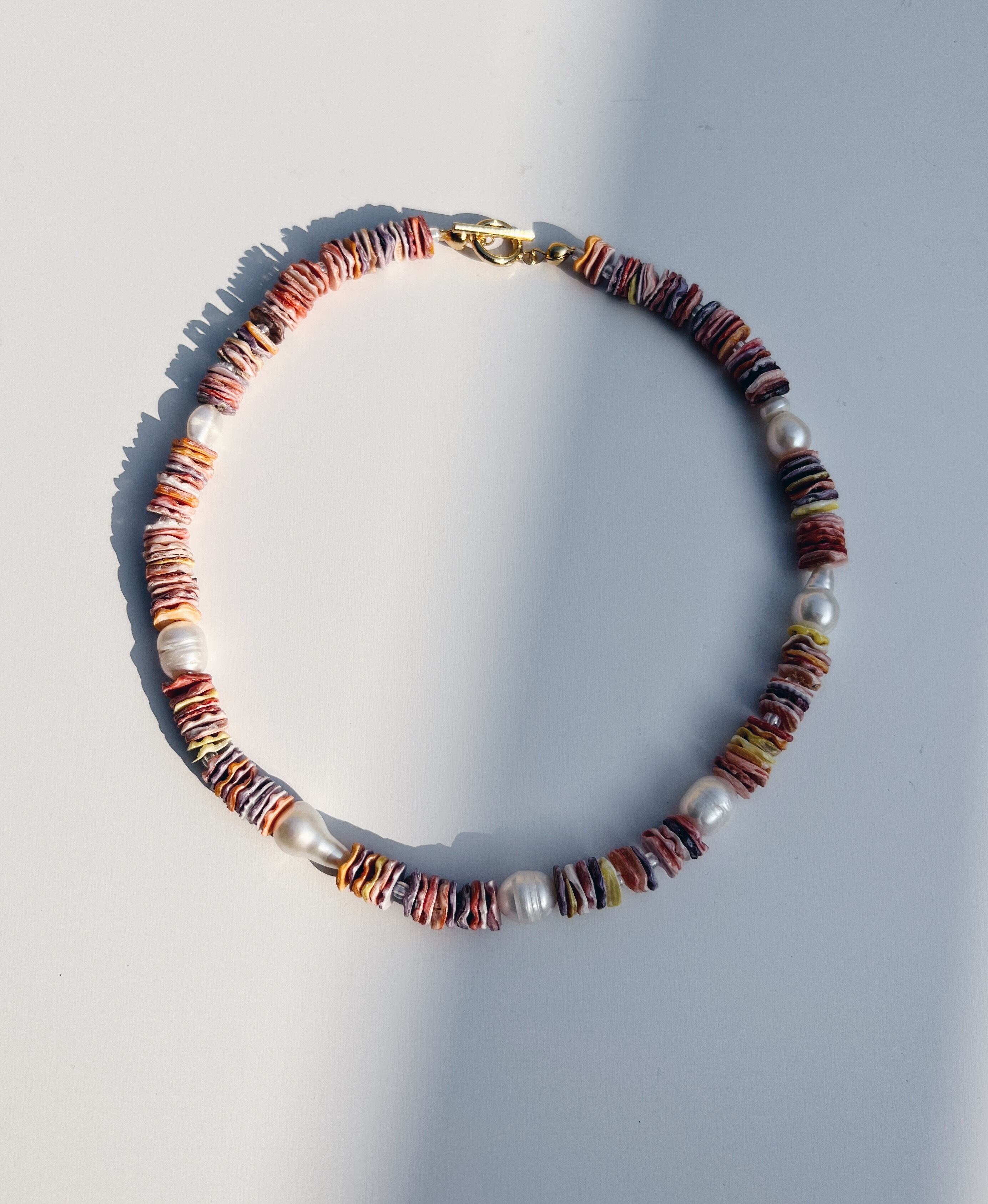 こちらは淡水パール7粒とシェルを組み合わせた