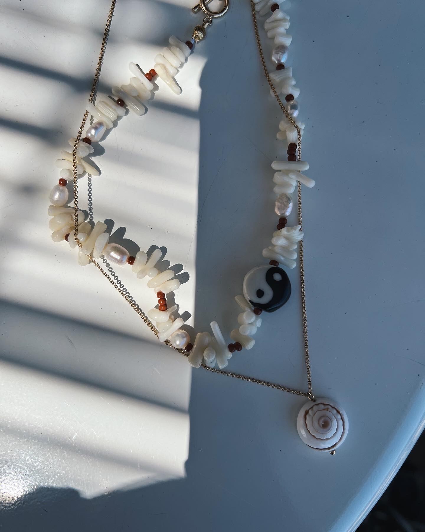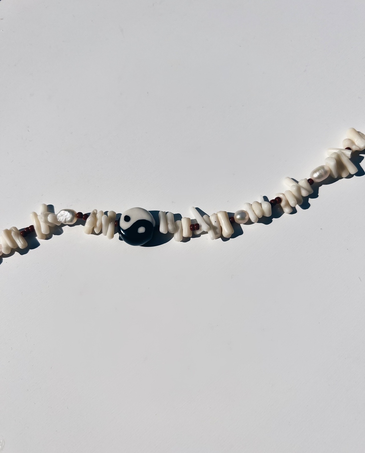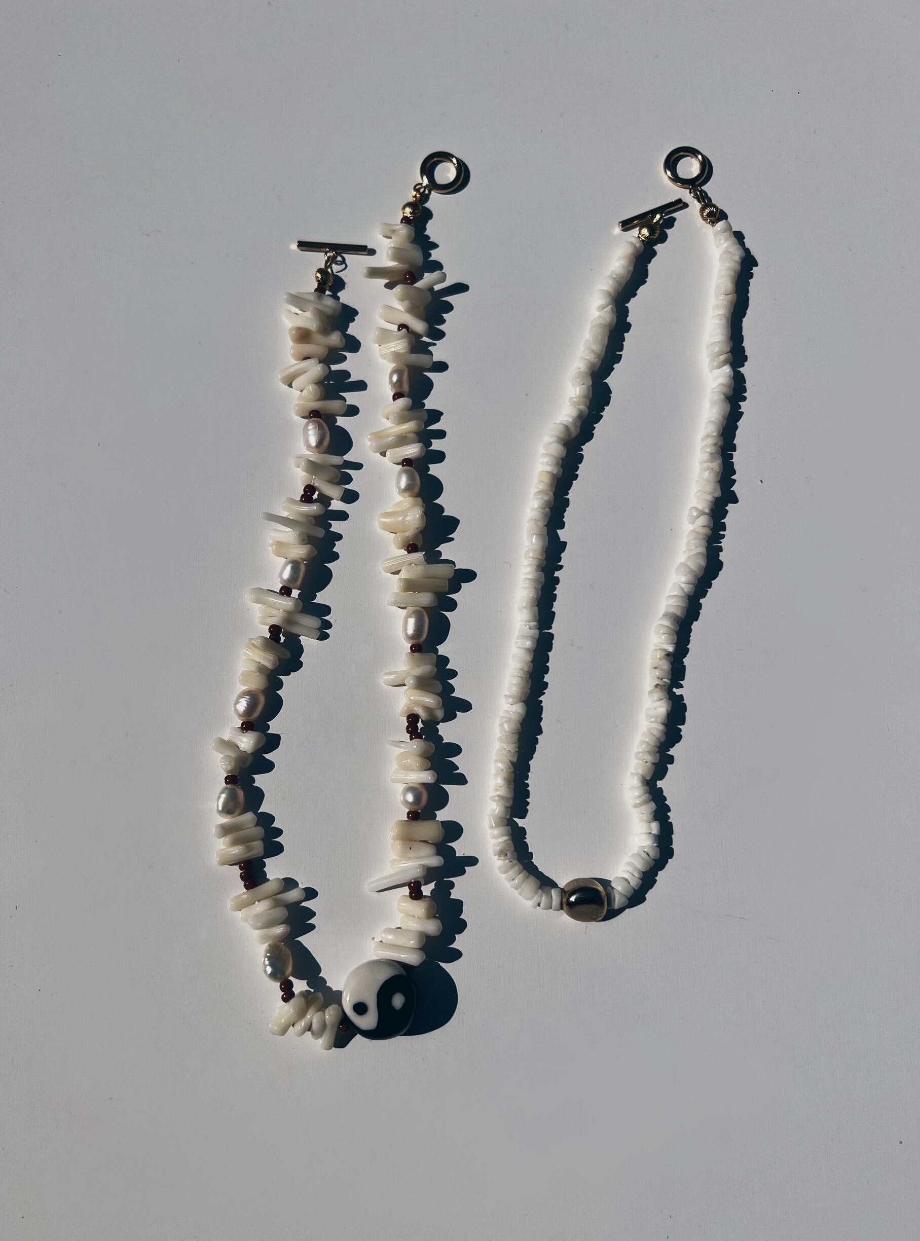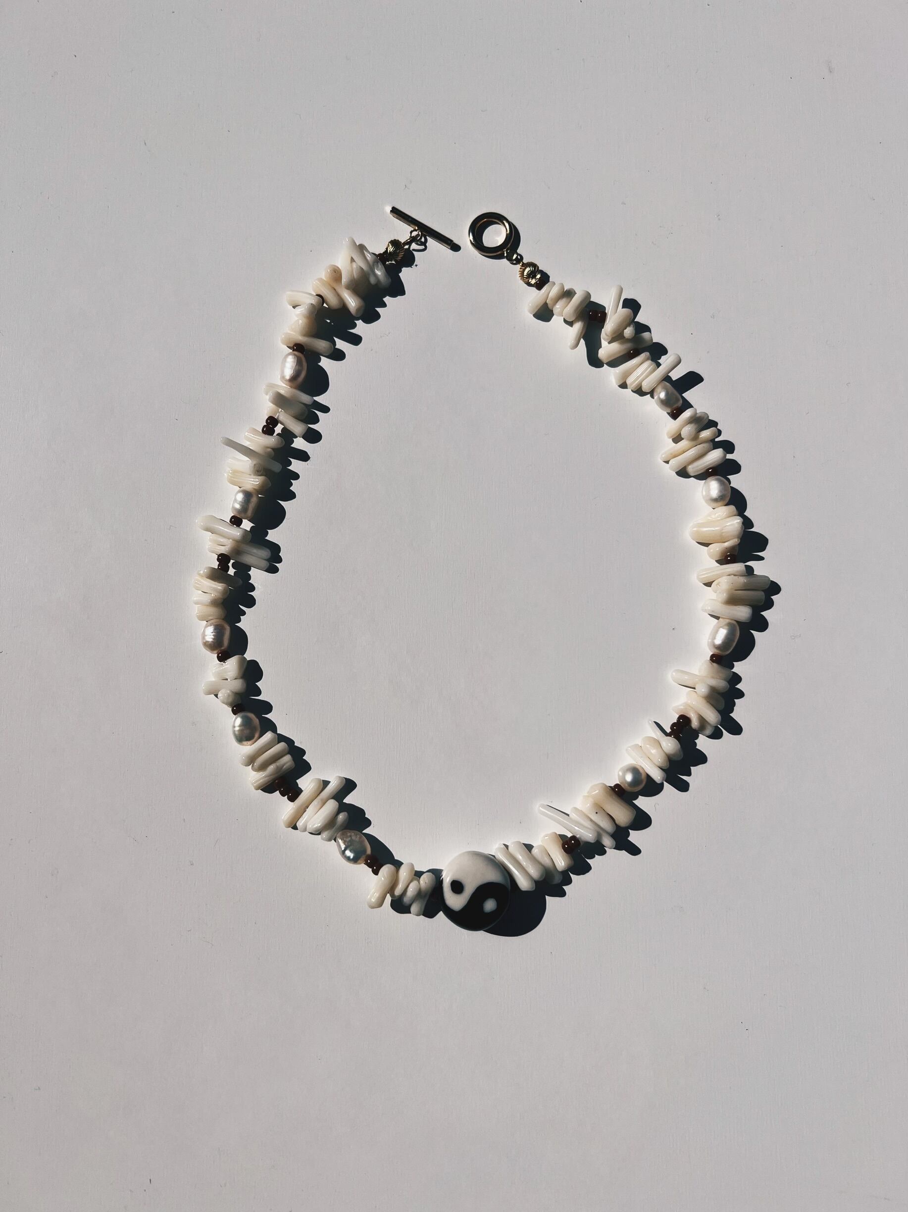 天然珊瑚ビーズを使った夏らしいネックレス