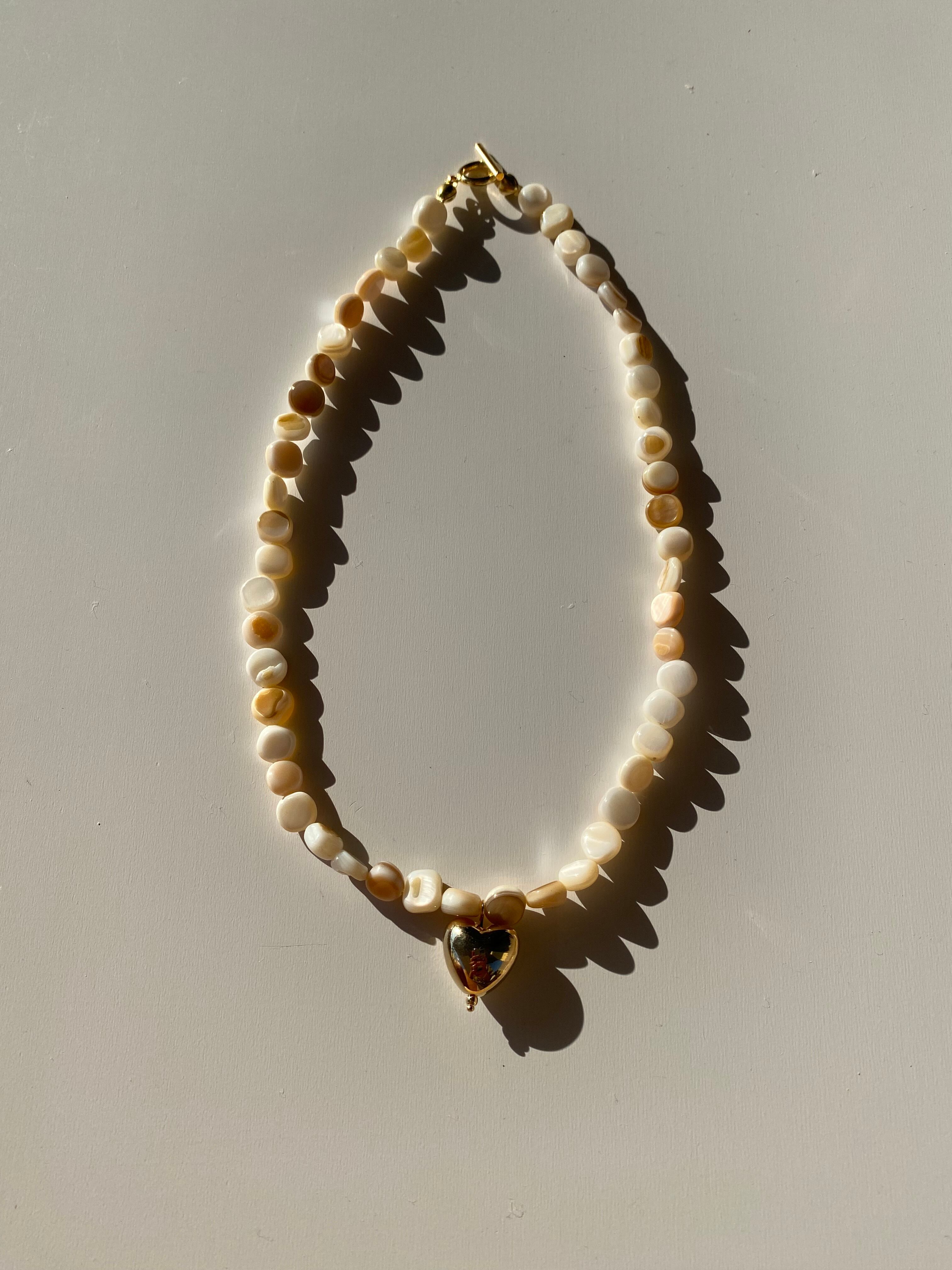 天然シェルビーズとゴールドハートトップの