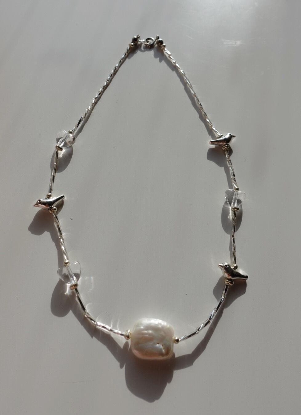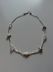 あえて光沢のあるシルバービーズを使い光を取り込みやすくすることで、シルバー特有のくすみが