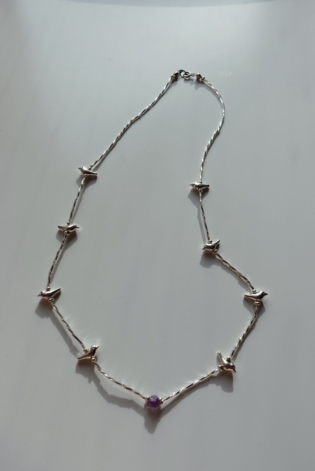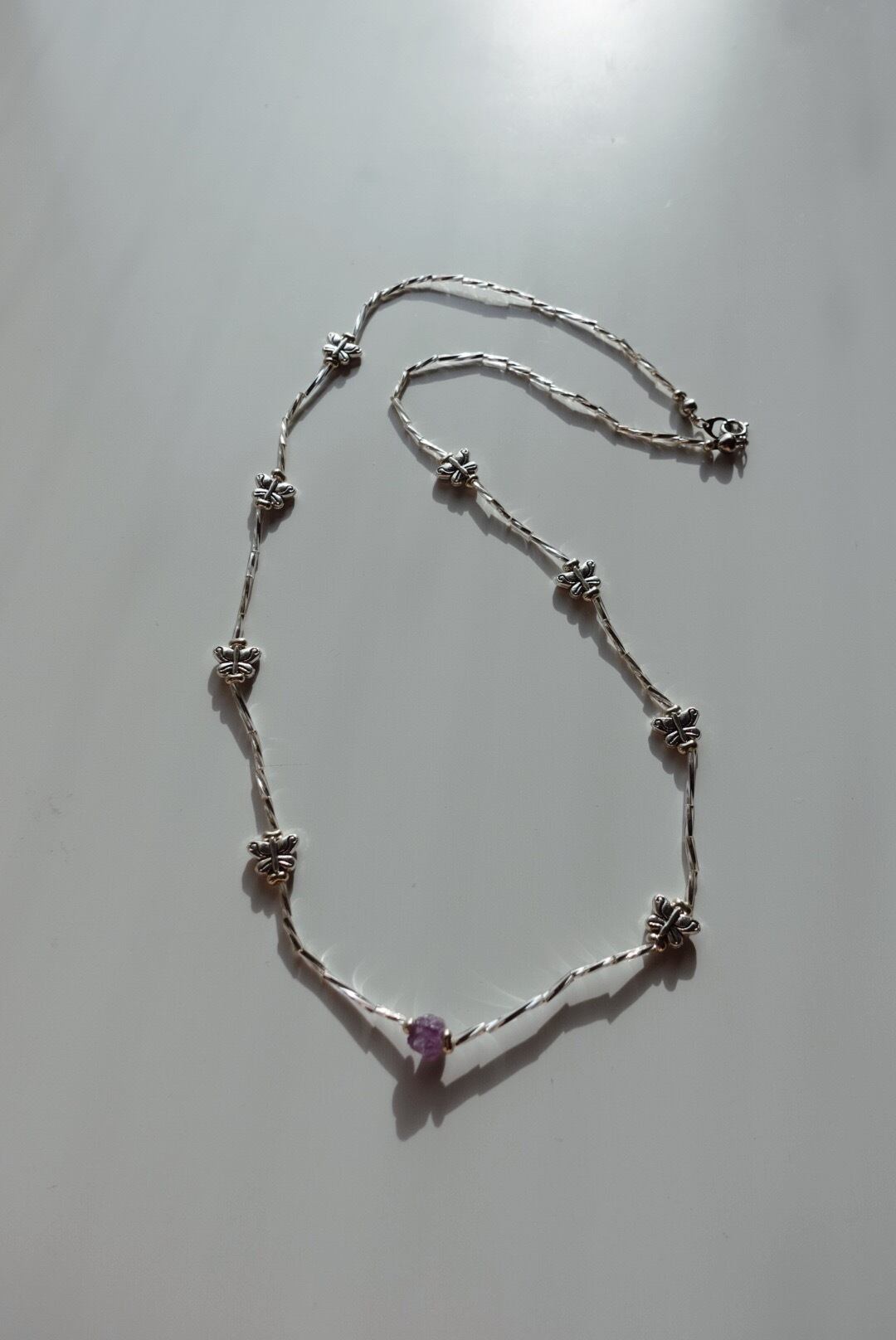あえて光沢のあるシルバービーズを使い光を取り込みやすくすることで、シルバー特有のくすみが